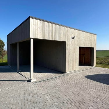 Timber frame garage with a loft and a firewood storage area, total area: 27,03 m2
